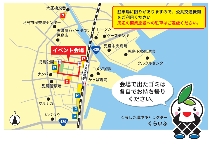 場所:児島駅前広場・民話通り広場・児島公園及び倉敷市児島産業振興センター